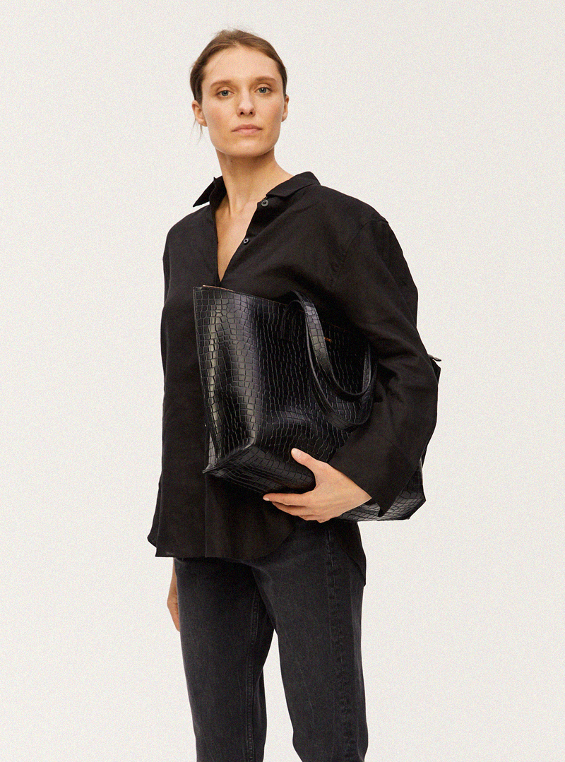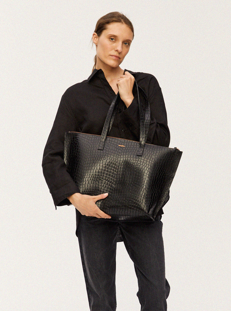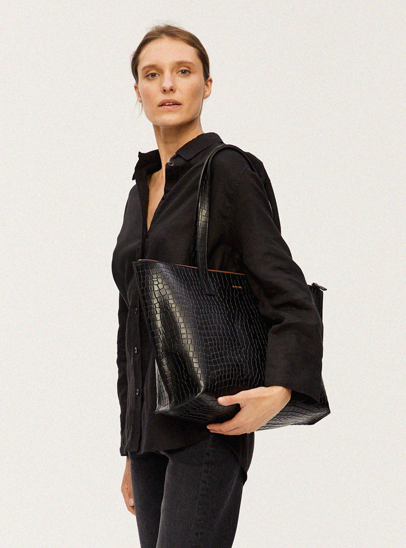 HomeShopShopper BagsCALMA Shopper Bag Croco Black