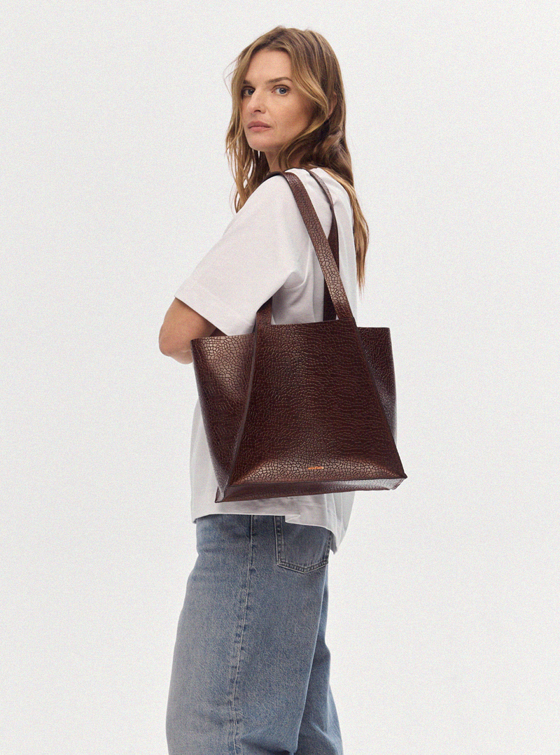 • PANE Small Shopper Woven Bag Dark Chocolate