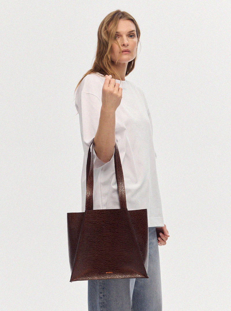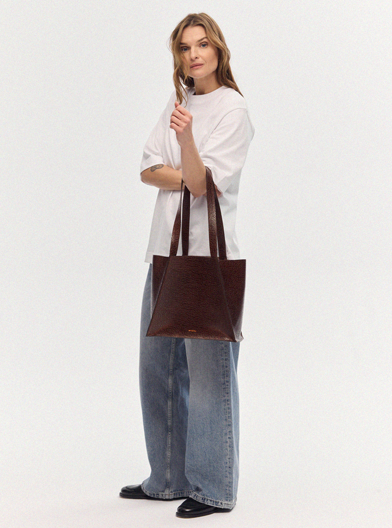MAURA Fold Bag is a functional bag, handmade from the highest quality crocodile skin embossed cowhide.