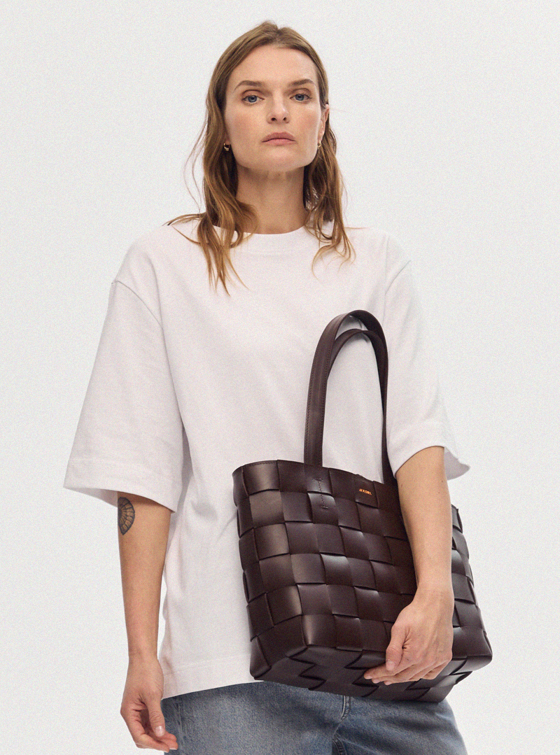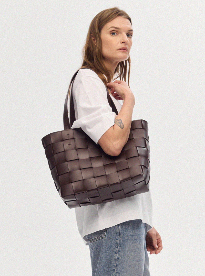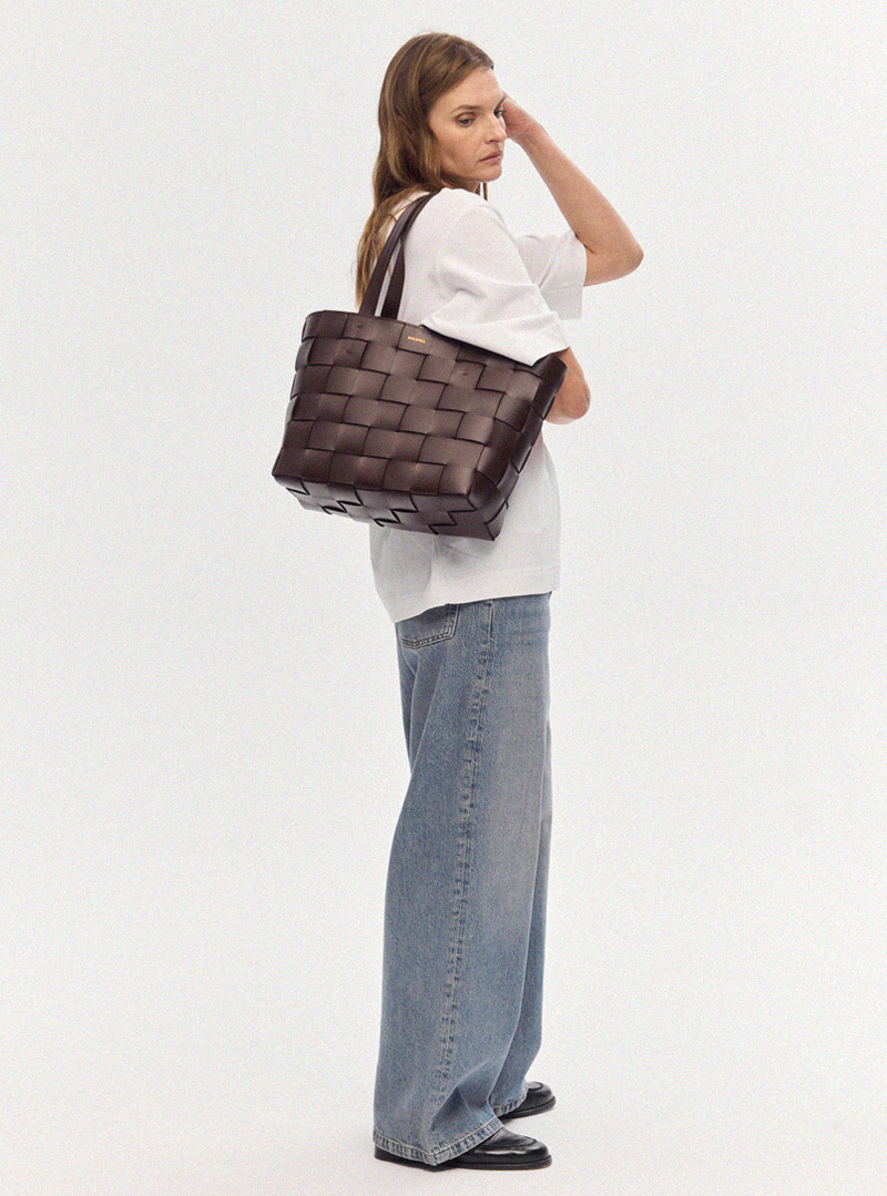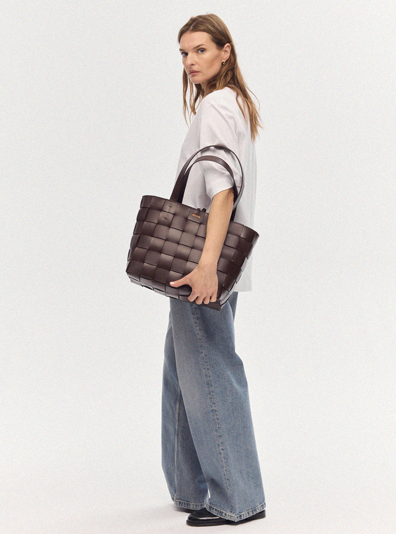 • PANE Small Shopper Woven Bag Dark Chocolate