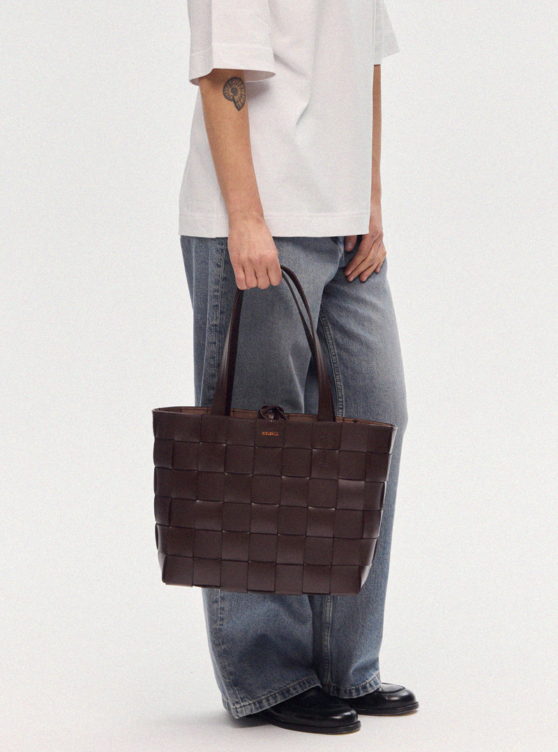 • PANE Shopper Woven Bag Horizontal Dark Chocolate