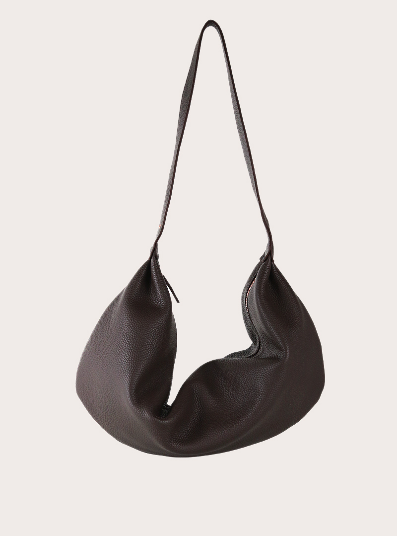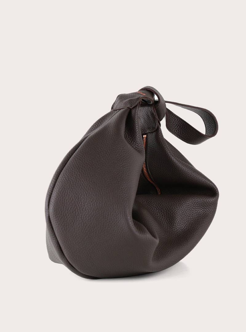 Średniej wiekości torba typu crossbody. Wykonana ręcznie z wysokiej jakości skóry bydlęcej garbowanej roślinnie. Zamykana od góry miedzianym zamkiem błyskawicznym. W zależności od potrzeb konstrukcja torby pozwala nosić ją na ramię, w poprzek klatki piersiowej lub w ręku. Subtelne logo w kolorze miedzianym tłoczone przy dolnej krawędzi paska.