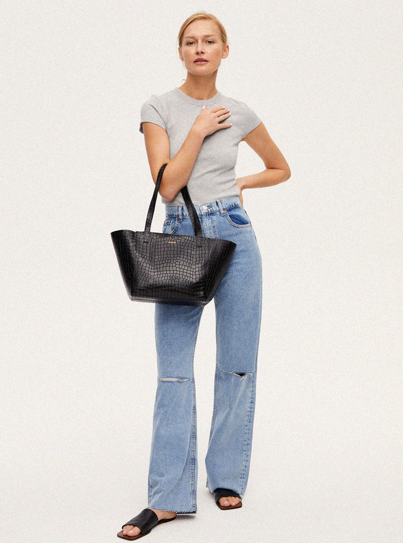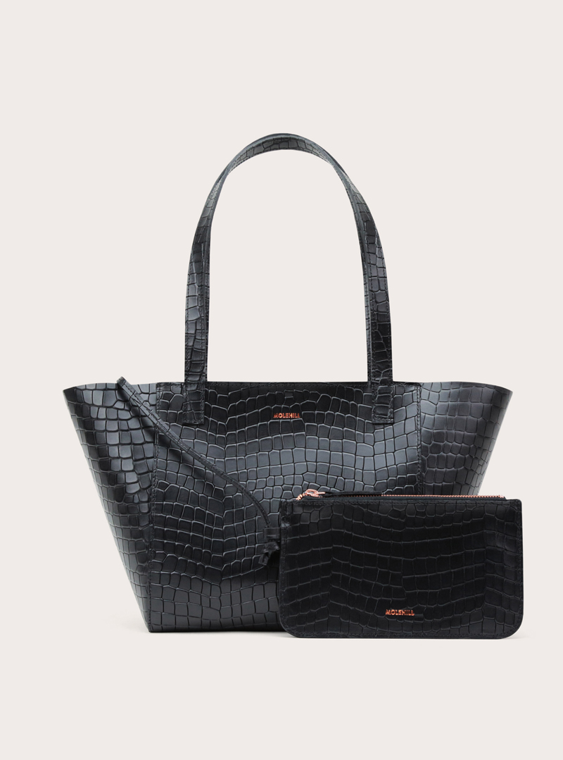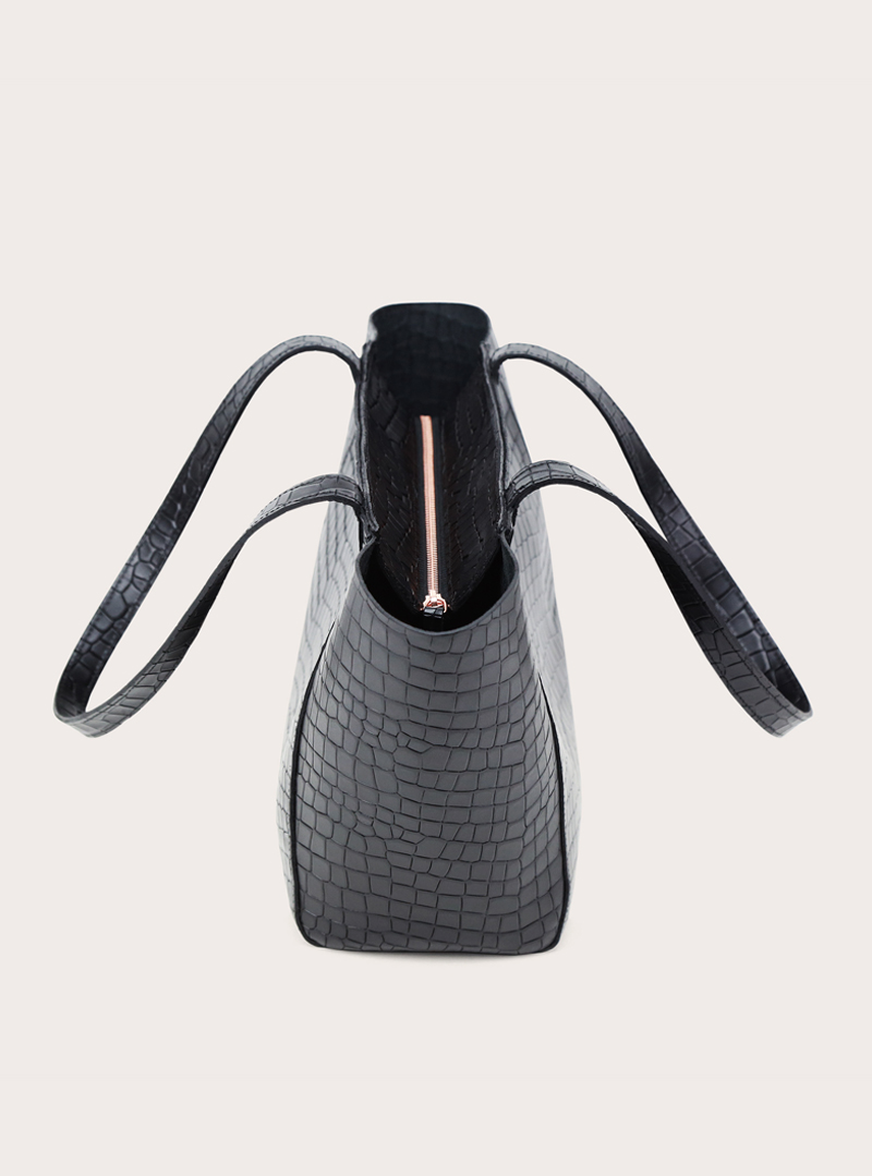 ESTE Medium Zip Shopper Bag Croco Black