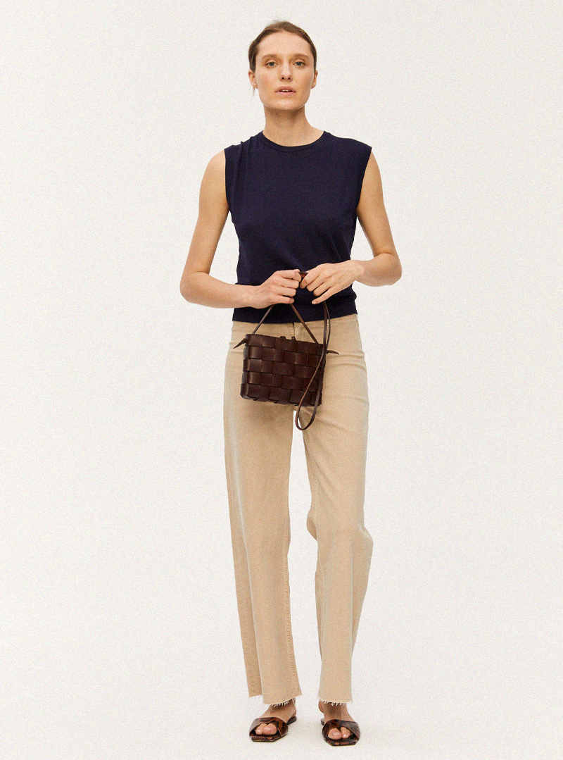 PANE Small Shopper Woven Bag Dark Chocolate