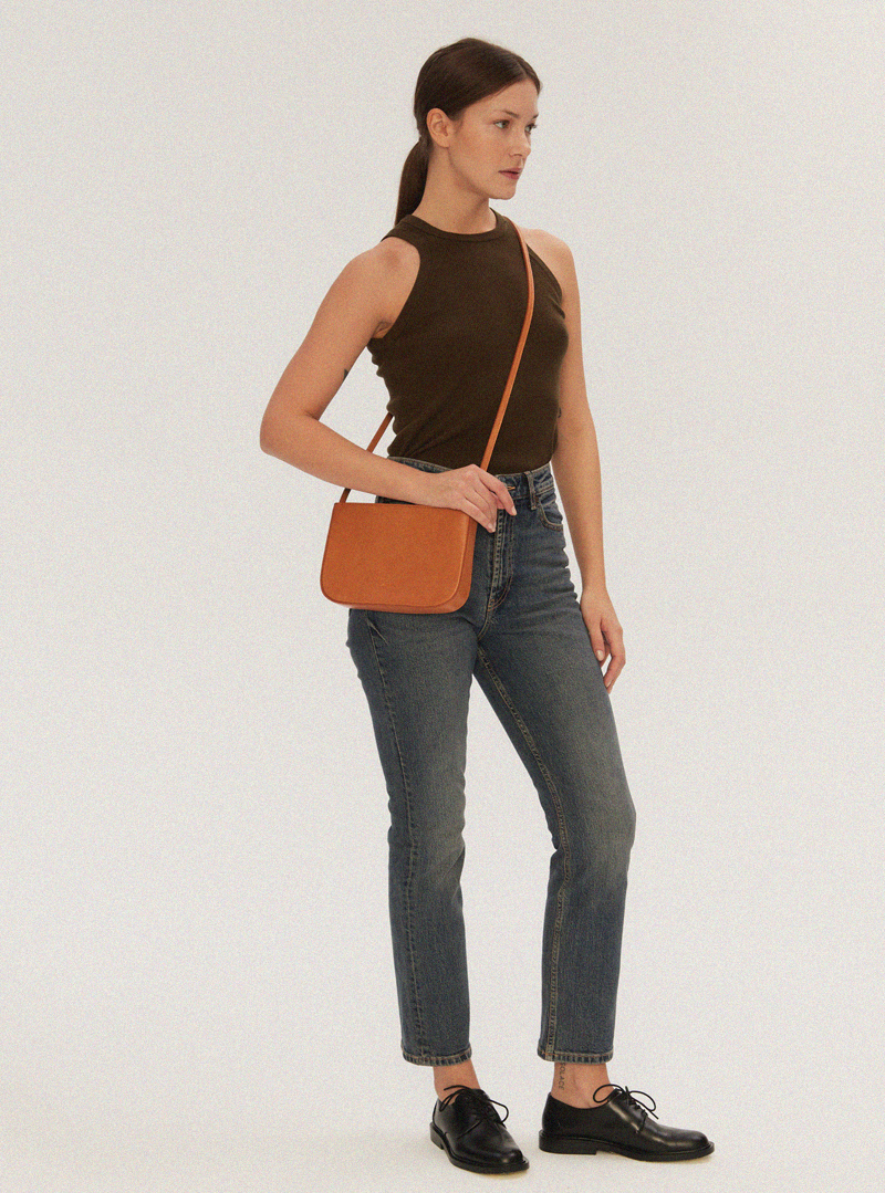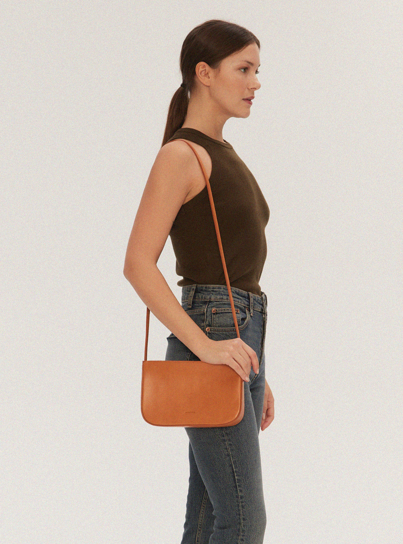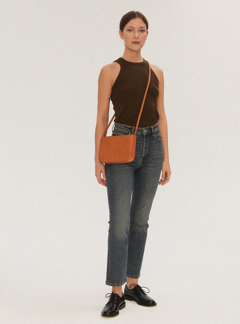 Torebka crossbody wykonana ręcznie z wysokiej jakości skóry bydlęcej garbowanej roślinnie. Zamykana od góry na zamek błyskawiczny w kolorze miedzianym. Posiada jedną komorę. Można nosić ją na dwa sposoby, na ramię lub w poprzek klatki piersiowej. Logo w kolorze miedzianym tłoczone przy dolnej krawędzi torebki.